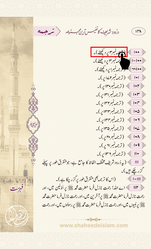 *** Durood Shareef çeviri numarasının üstüne tıklayarak görünüm olabilir.
