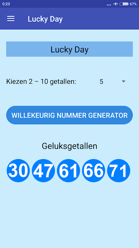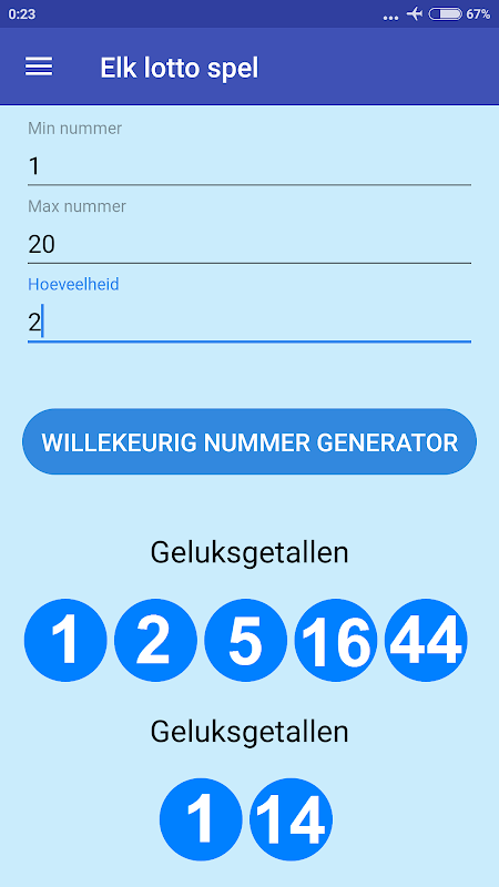 Bu ücretsiz uygulama ile Dutch Lotto, Eurojackpot, Lucky Day oyunları ve diğer loto oyunları için rastgele sayılar seçebilirsiniz.