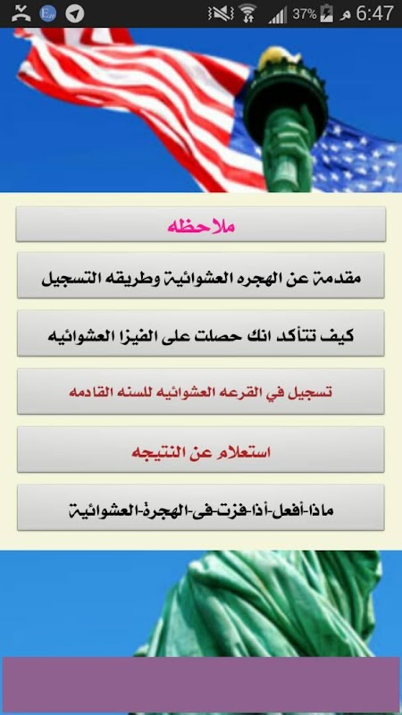 it is application to show the help to whom ask about lottery to united state and show the help how registeration and what the necessary things to register and provide some advice to whom register in the lottery