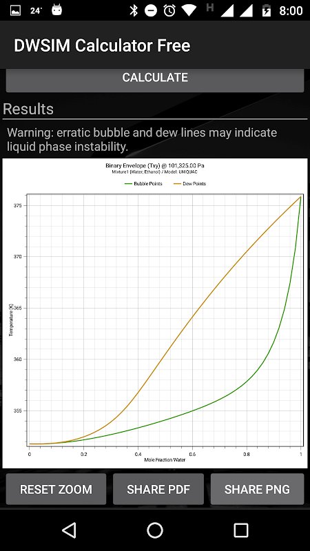 DWSIM Hesaplama gelişmiş termodinamik modeller kullanılarak faz dengeleri ve maddeler (bileşikler) karışımlarının özelliklerini hesaplamak için bir uygulama. DWSIM, masaüstü için ödüllü bir açık kaynak işlemi simülatörü modeli kütüphanesine dayanarak, Android için DWSIM Hesaplama özellikleri: