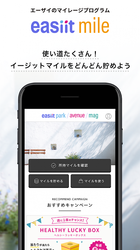簡単にParkのキャンペーンに応募したり、Avenueでお買い物をすることで、Easiit Mileをどんどん貯められるワンストップサービスです。