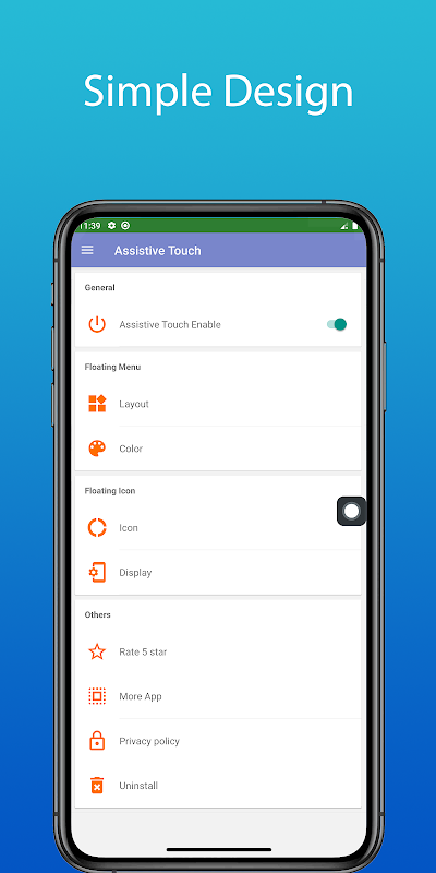 Kolay dokunma, sanal ana sayfa düğmesi, geri düğmesi, ekranı kapatma ve Ekran Kaydedici