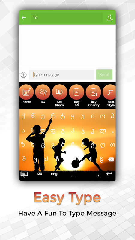 Kolay Yazma Gürcü Klavye, yazı tipleri ve Temalar Klavye daha şık hale getirmek için son araçlara sahiptir.
