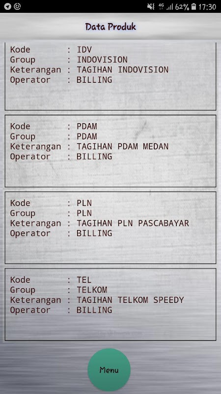 - Isi Ulang Pulsa, Voucher Game, Pembayaran Tagihan PLN,Telkom,Indovision,BPJS Dll.