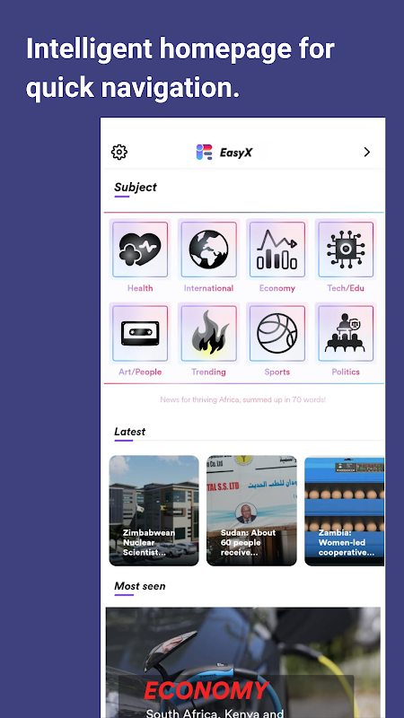 Afrika için muzaffer bilgilerin merkezinde olun. EasyX, haberleri birkaç kelime ile özetleyen bir mobil uygulamadır. Afrika bilgilerini daha önce hiç olmadığı gibi keşfedin!