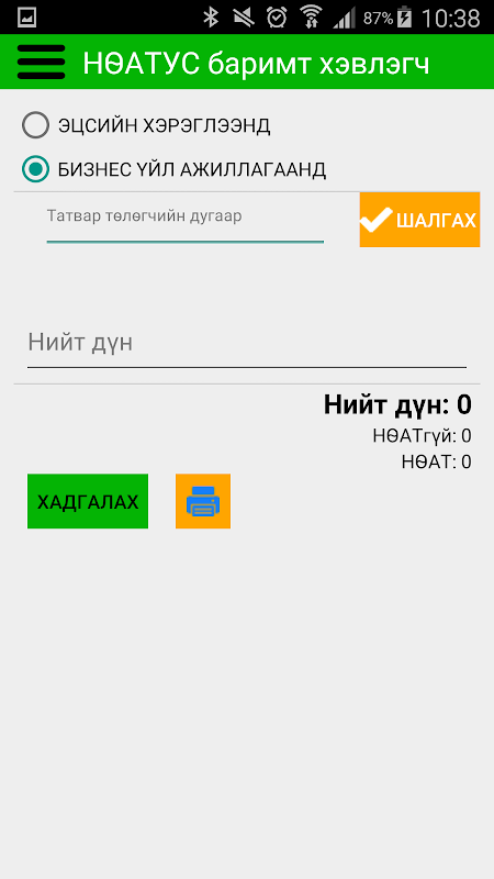 Бизнес эрхлэгч Та гар утасаа ашиглан НӨАТУС төлбөрийн баримт хэвлэн өгч болно.