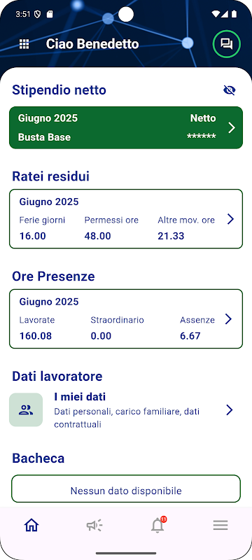 - Çalışan maaş bordrosunu, CU'yu, tatil bakiyesini, izinlerini, şirket iletişimlerini vb. bir web portalı ve mobil uygulama aracılığıyla görüntüler.