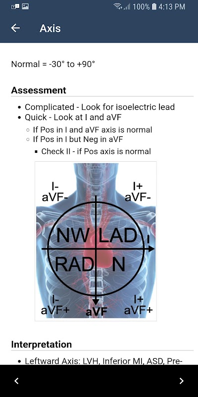 ✦ Rapid Reference section - one tap takes you to 11 summary pages used to confidently interpret ECGs