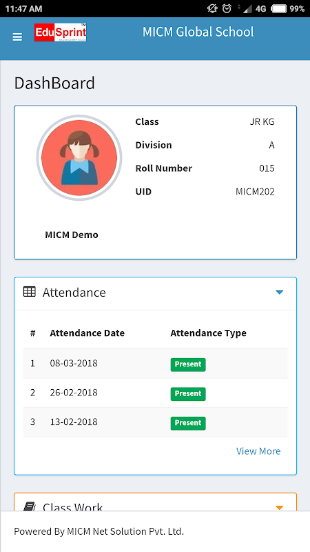 Not: Pleas Edusprint + App yararlanmak için MICM Net Çözüm PVT LTD kayıt yaptırmasını Okulu sormak (okul yetkilileri tarafından sağlanan olacak App kimlik bilgileri yalnızca)