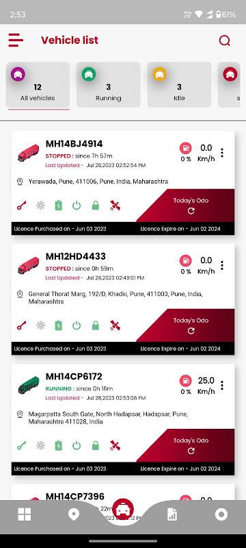 Bu özellik, kullanıcının tüm araçlarını tek bir harita üzerinde, durdurulmuş, çalışır durumda, bekliyor veya devre dışı durumda olup olmadığını görmesini sağlar.