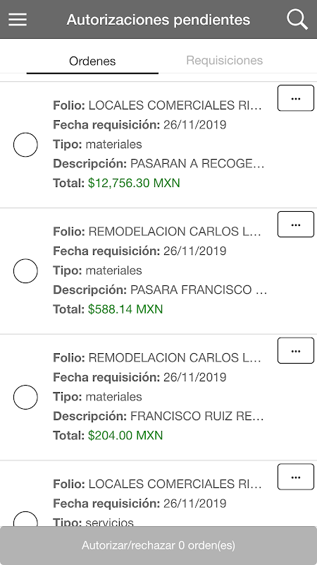 Eiro'dan satın alma siparişlerini görüntülemek ve yetkilendirmek için başvuru.