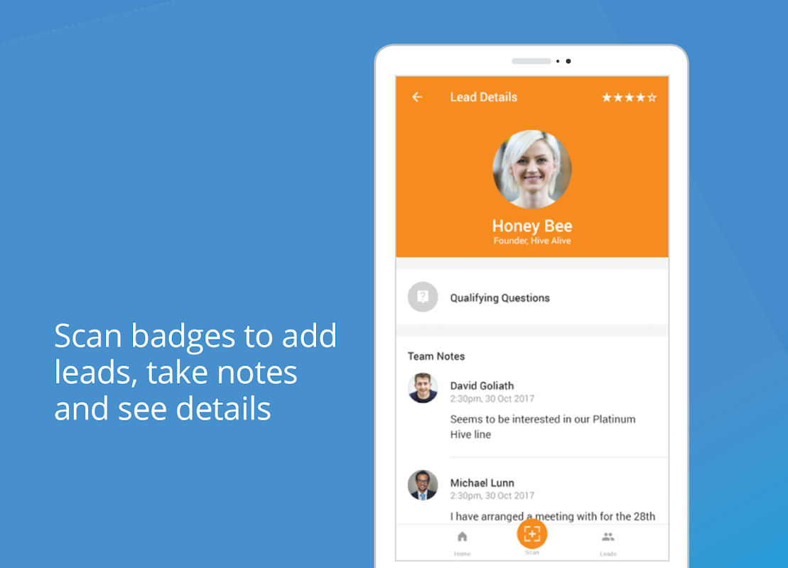 katılımcı ve sponsor kendi android cihaz kullanarak gerçek zamanlı olarak potansiyel müşteriler yakalamak için.