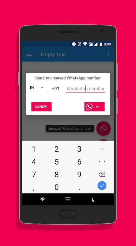 Şimdilik daha iyisi: Hatta kaydedilmemiş Whatsapp NUMARALARI boş metinleri gönderebilirsiniz! sayılarını kaydetmek gerek yok! Sadece numarasını girin ve Boş Metin göndermek!