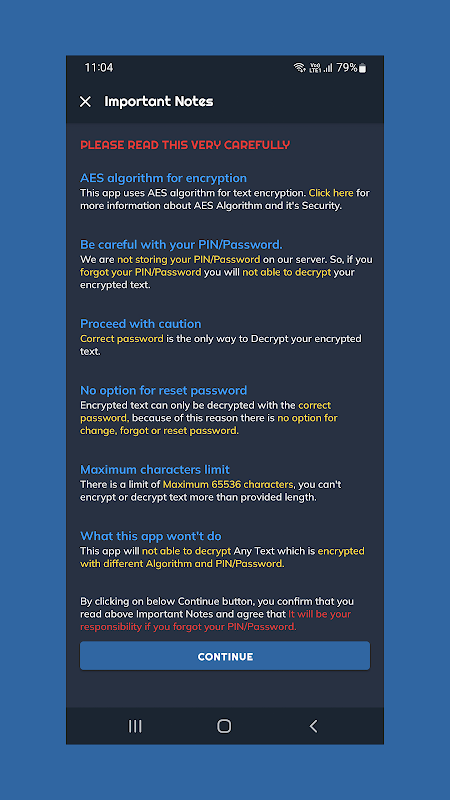 Uyumluluk: Bu uygulama yalnızca doğru parolaya sahip uyumlu AES metinlerinin şifresini çözebilir.