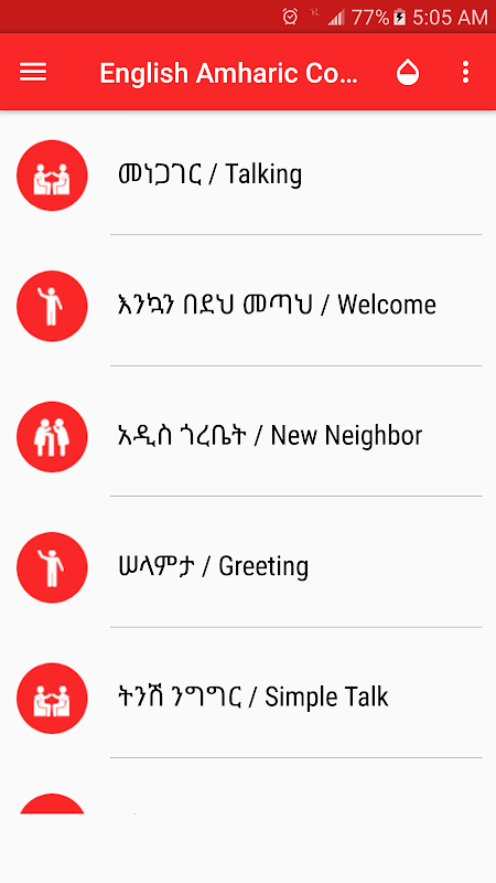 Bu uygulama Amharca konuşanlar için İngilizce Dil Öğrenme odaklı.