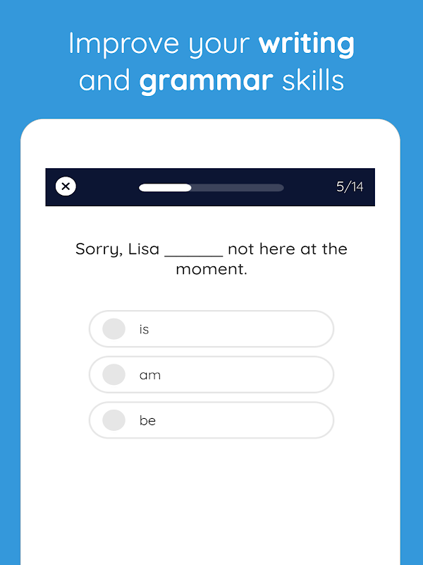 The best app for you to learn english grammar and vocabulary. Practice your skills with over 10,000 english exercises separated by levels and categories.