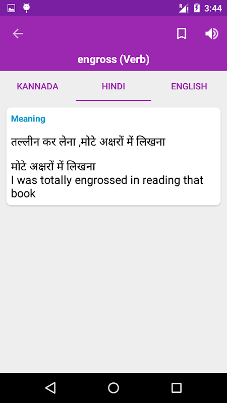 English to Kannada Dictionary is a free offline English to Kannada Dictionary App which also shows meaning in Hindi and English.