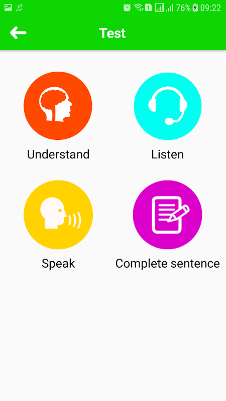 tamamen temalı 4 becerileri (dinleme, konuşma, okuma, yazma) tam test ve test: Test iki modu vardır.