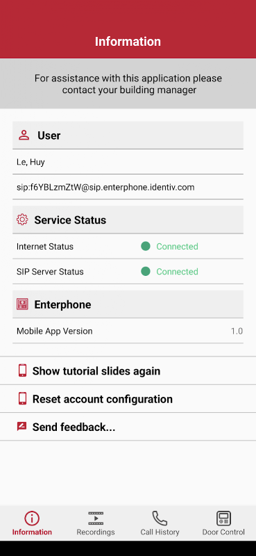 Enterphone Mobil Uygulaması, herhangi bir zamanda, herhangi bir yerde Enterphone interkomunuzdan sesli ve görüntülü iletişim sağlar ve ziyaretçinizi ön kapıda görmenizi sağlayarak ek bir güvenlik katmanı sağlar. Gördüklerinize ve duyduklarınıza göre erişim izni verin veya reddedin.