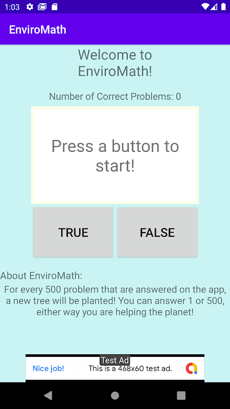 EnviroMath is a learning app that benefits planet Earth! Each time you do a problem, you contribute to us being able to plant a new tree! For every 500 problems that our users answer, we will plant a new tree! The app is completely free and is a great way to help the Earth while practicing your math skills!