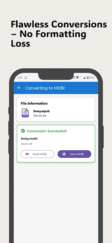 ✔ Hızlı ve Doğru Dönüştürme – Biçimlendirmeyi kaybetmeden EPUB'ı MOBI'ye sorunsuz bir şekilde dönüştürün