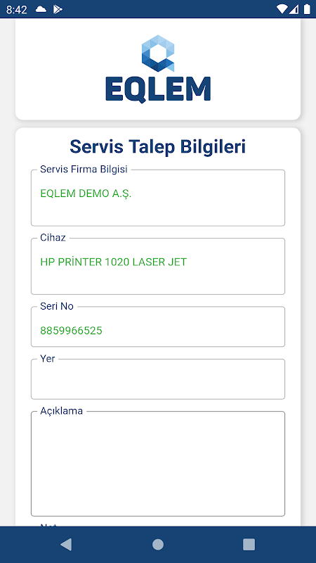 EQLEM Envanter ve Müşteri İlişkileri modülü servis talep uygulaması