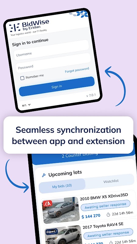 Eridan'ın BidWise'ı, Copart ve IAAI gibi platformlar da dahil olmak üzere ABD çevrimiçi otomobil müzayedelerini kullanan alıcılar için bir mobil uygulamadır.