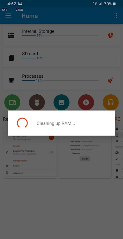 ES File Explorer and Manager also can be used to clean unnecessary memory from your device