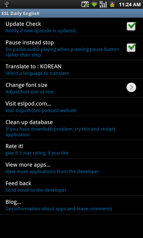 Downloading mp3s on 3G can be costly depending on your provider; using WIFI connection would be preferable in most cases. This app is not endorsed or sponsored ESL Podcast but agreed upon publishing this app. If you have technical questions about the app, please contact ImApp Soft.