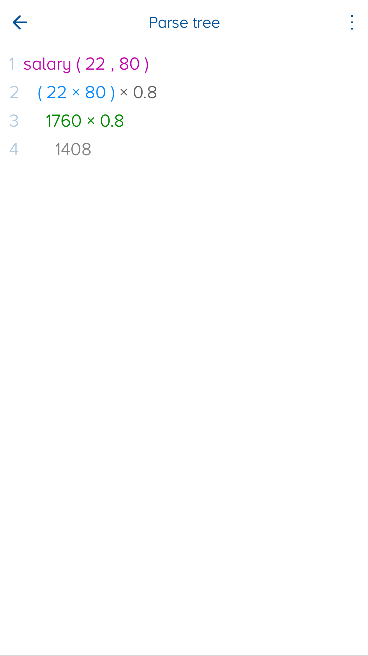 Gelişmiş hesap makinesi, bir ayrıştırma ağacını (tek tek değerlendirilen matematik işlemlerini) ve farklı sayıda bağımsız değişkenle 14 adede kadar özel işlev ekleme ve bunları aşırı yükleme olasılığını gösteren bilimsel bir hesap makinesidir.