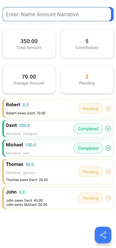 🔄 Tüm hesaplamalar anında güncellenir, böylece paylaşılan harcamalarınızın en güncel durumunu her zaman bilirsiniz.