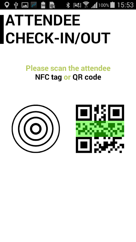 Checking attendees in and out is as simple as scanning an NFC tag or using the camera on your Android device to scan a QR code.