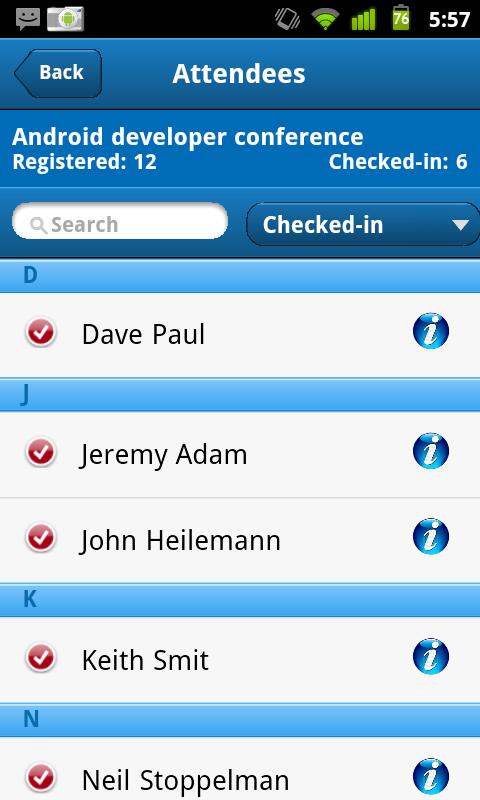 * Search for attendees and view their details quickly.