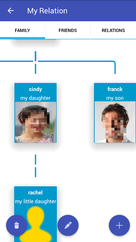 Kişi (bakıcılar veya aile üyeleri tarafından yardım edilen), yüz kamera tanıma özelliğini kullanarak kendi ilişkiler ağacını (aile, arkadaşlar, ilişkiler) oluşturabilir.