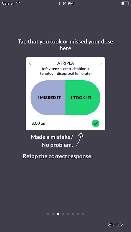 • Daily Dose Reminders and Drug Details: Know when you took or missed