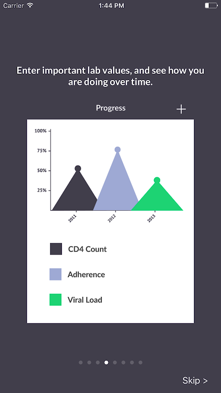 • Viral Load/CD4 Tracking: Track lab values and monitor your adherence