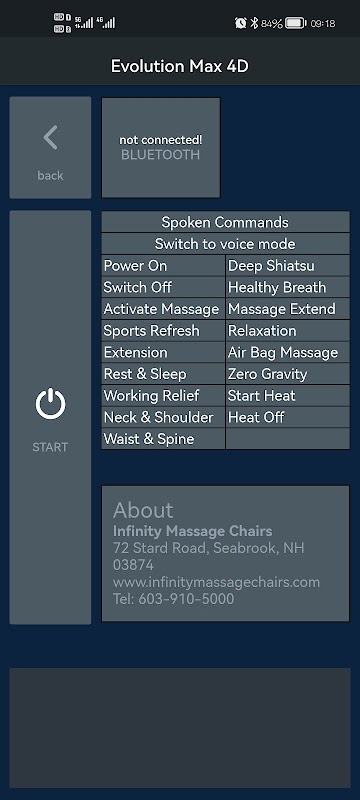 Evolution Max 4D masaj koltukları mobil uygulaması.