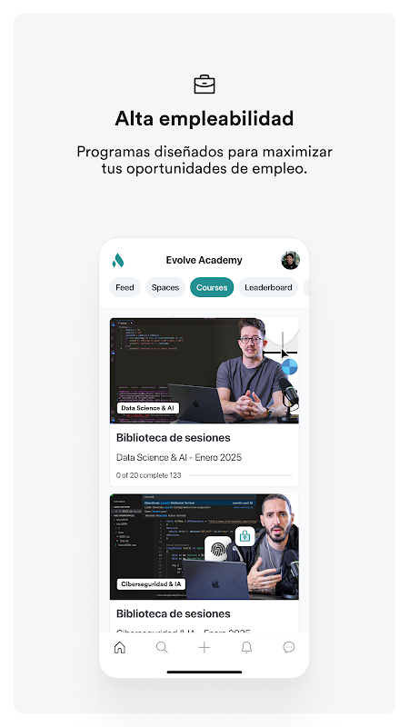 Ücretsiz Evolve uygulamasını indirin ve bir formasyon pratiği sunmak ve dünyanın en çok talep edilen teknoloji alanlarında uzmanlaşmış bir platforma erişin.