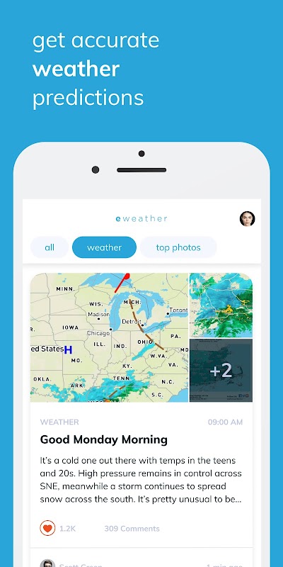 Tipik hava durumu uygulamanız değil! İlgi çekici bir sosyal platformda kitle kaynaklı hava durumu bilgileri ve fotoğrafçılıkla birleştirilmiş ayrıntılı tahminler.