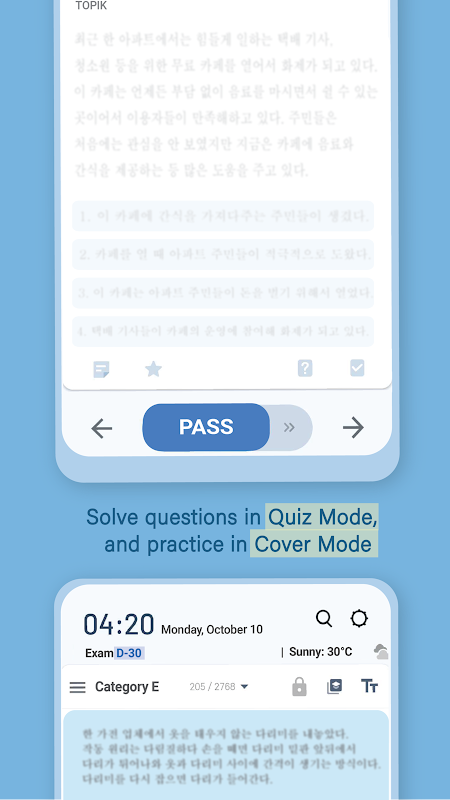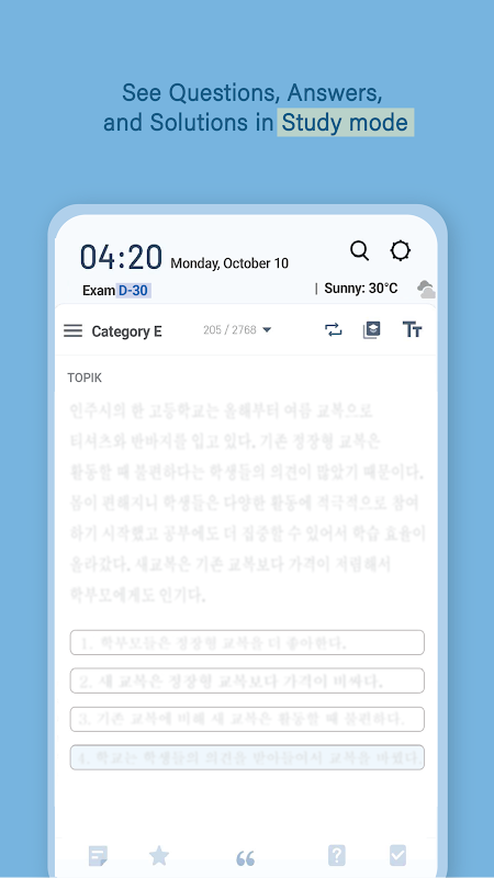 Akıllı telefonunuzu her açtığınızda TOPIK'i inceleyin ve Korece dil becerilerinizi kolayca geliştirin.