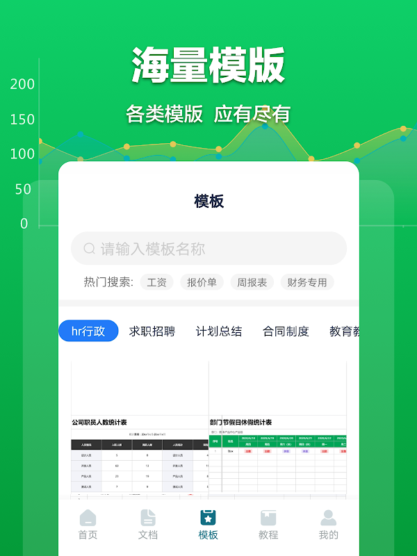 针对不同用户,我们提供不同使用场景的excel模、word模板和ppt模版,无论您是财务、人力资源、销售或者其他工作人员,都有对相应模版套用。