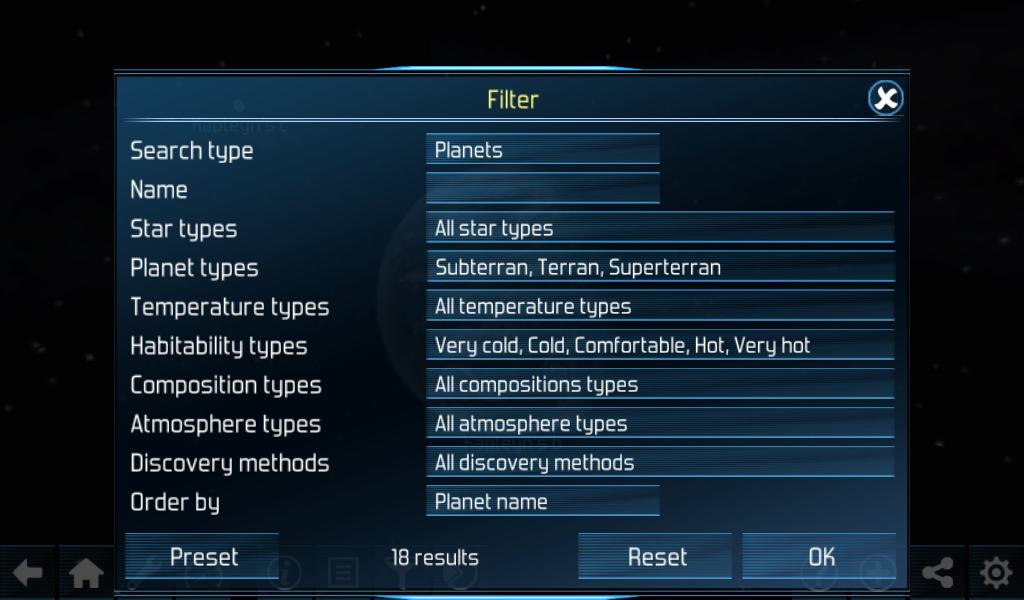 The full version of Exoplanet Explorer HD has the following features: