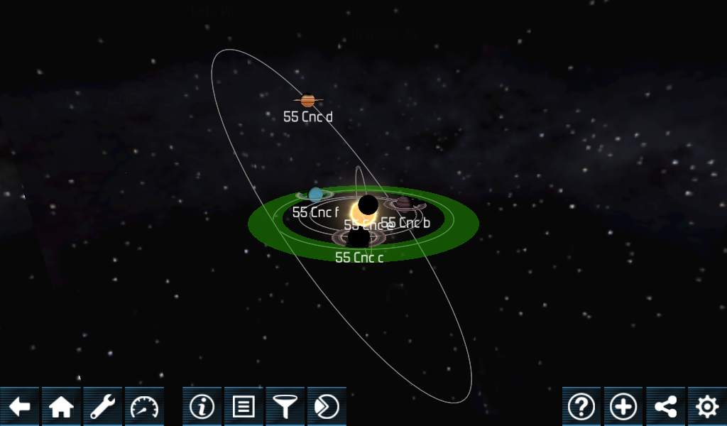 Exoplanet Explorer presents interactive 3D models of real solar systems. It visualises planets that have been discovered around distant stars.