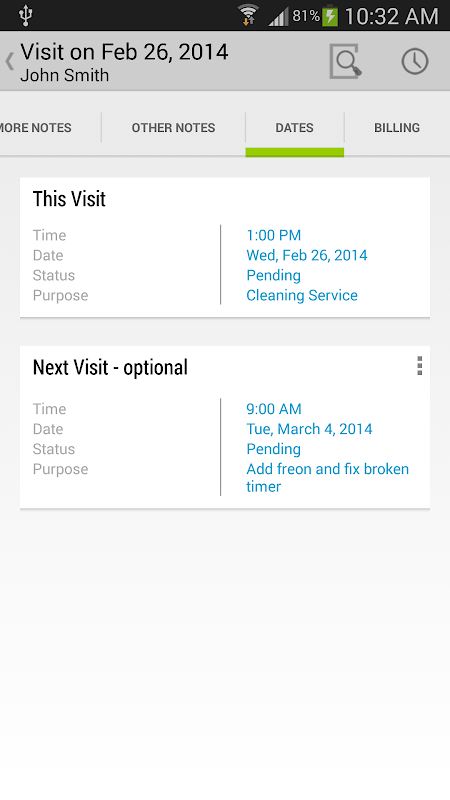 • During client visits, add visit notes like text, picture, voice recording, or handwriting
