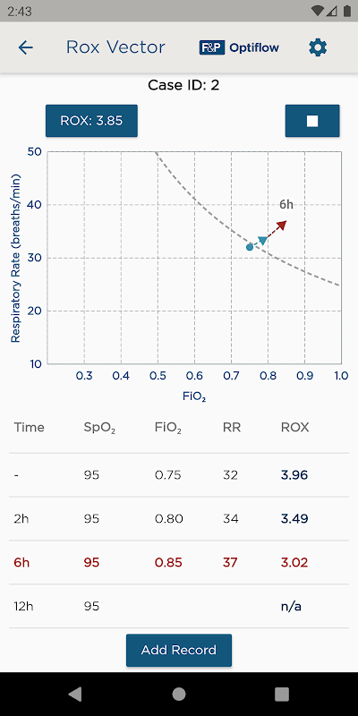 ROX Vektör App vektör şeklinde solunum hızı ve verilen oksijen fraksiyonu değişiklikleri görselleştirmek için tasarlanmıştır.