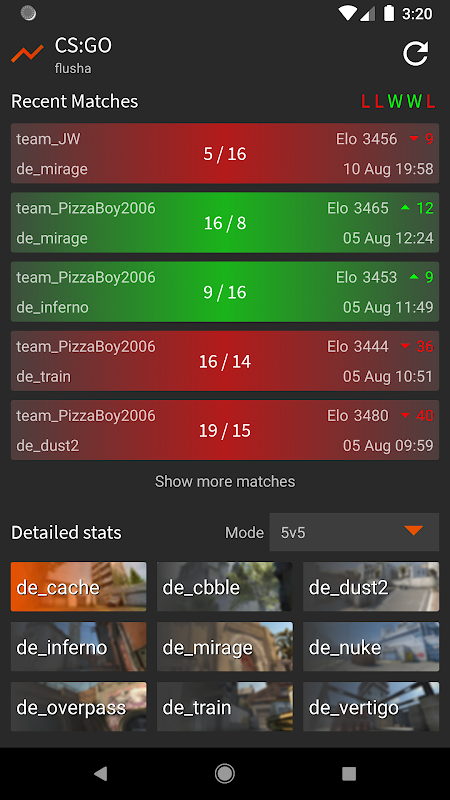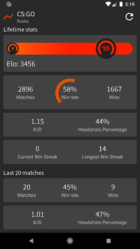 🔸 Oynanan maçlar, kazanma oranı, öldürme / ölüm oranı, kafadan vuruş yüzdesi