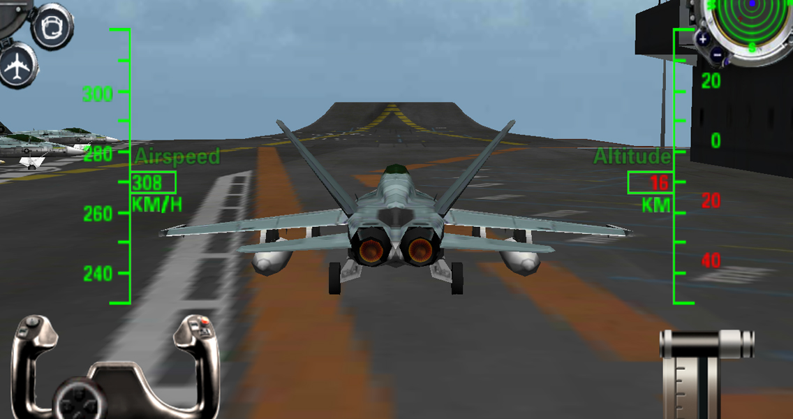 Gaz kolu da ince ayar uçan sırasında uçağın uçuş tutum doğru döndü / bırakılabilir. Uçan sırasında uçağın herhangi bir uçuş tutumları değiştirmek için uçak simgesine dokunun.