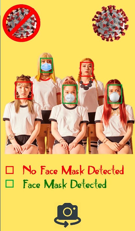 Yüz Maskesi Algılama uygulaması kameradan girdi alır ve yüz maskesinin olup olmadığı hakkında algılama yapar. Yüz Maskesi algılama uygulaması hem ön hem de arka kameralardan video girişi alır.