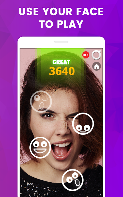 Just download and install the APK from Google Play, choose a song from the list and configure the facial detection by means of the front camera of your mobile phone. Once calibrated, smileys and emojis will start appearing on your screen and you'll have to try to imitate those gestures to the rhythm of the music so that the app counts them as valid notes.