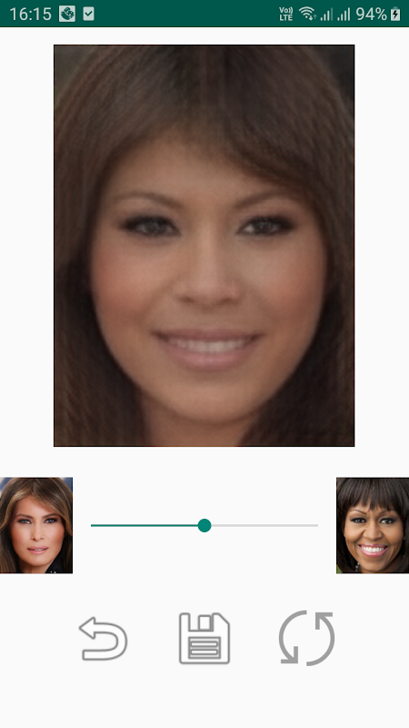 FaceMix yüzlerin iki resmini çeker ve karıştırır. Çıktı, her iki yüzün gerçekçi görünümlü bir karışımıdır.
